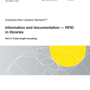 AS/NZS ISO 28560.3:2023 identically adopts ISO 28560 3:2023 which provides a data model and encoding rules for the use of radio frequency identification (RFID) tags for items appropriate for the needs of all types of libraries (including national, academic, public, corporate, special, and school libraries)