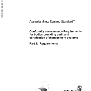 Adopts ISO/IEC 17021-1:2015 to specify principles and requirements for the competence, consistency and impartiality of the audit and certification of management systems of all types (e.g. quality management systems or environmental management systems) and for bodies providing these activities.