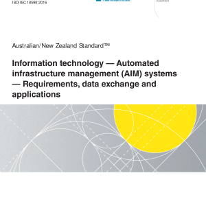 Identically adopts ISO/IEC 18598:2016 for Australia and New Zealand, which specifies the requirements and recommendations for the attributes of automated infrastructure management (AIM) systems. It explains how AIM systems can benefit cabling infrastructure and connected device administration, facilities, IT and other networked management processes and systems, and business information systems that assist with physical network security. It specifies a framework for data exchange with other systems.