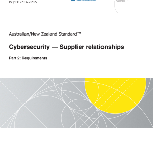 AS/NZS ISO/IEC 27036.2:2024 identically adopts ISO/IEC 27036 2:2022, which specifies fundamental information security requirements for defining, implementing, operating, monitoring, reviewing, maintaining and improving supplier and acquirer relationships