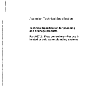This Australian Technical Specification sets out requirements for flow controllers with or without bodies that have a flow rate of no greater than 16 L/min, for use in heated or cold water plumbing systems. Content history AS 5200.037.2-2008 [Current] Please select a variation to view its description. Published 23/05/2005 Pages 13 Please select a variation to view its pdf.
