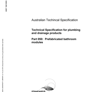 This Australian Technical Specification sets out minimum requirements for prefabricated bathroom modules that include integral components, accessories and fittings, designed for direct connection to the water supply and sanitary drainage system.