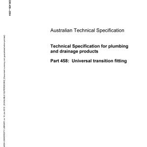Home/AS/ATS 5200.458-2004 🔍Purchase the full subscription package now and enjoy a 40% discount, along with free updates for future editions. ATS 5200.458-2004$63.00 Technical Specification for plumbing and drainage products, Part 458: Universal transition fitting ATS 5200.458-2004 quantity Add to cart PDF Format Searchable Printable Preview Now Description Edition Details Additional information Preview PDF This Technical Specification sets out requirements for transition couplings of plastic body material intended to join PE, copper, PVC and galvanized steel pipes for cold water applications to each other and to themselves, i.e., PE to PE. Content history AS 5200.458-2008 [Current] Please select a variation to view its description. Published 01/01/2004 Pages 6 Please select a variation to view its pdf. Related products AS 2400.13-1983 $63.00 Add to cart AS 1714-1990 $119.20 Add to cart AS/NZS 4641:2007 $149.01 Add to cart AS 1366.3-1982 $50.39 Add to cart