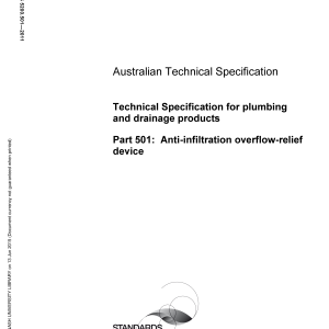 This Australian Technical Specification sets out requirements for moulded PVC-U anti-infiltration overflow-relief devices, of nominal size DN 100, that are intended, upon installation in an overflow relief gully (ORG), to prevent the infiltration of surface waters to the sewerage and drainage systems and provide for the overflow relief of any surcharge of the sewerage and drainage systems.
