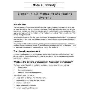 The Workplace Manual — Model 4: Diversity — Element 4.1.3: Managing and leading diversity