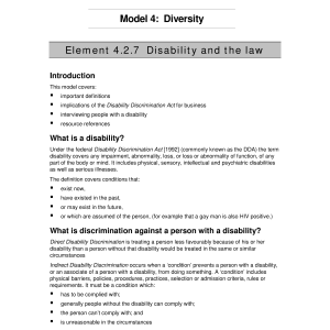 The Workplace Manual — Model 4: Diversity — Element 4.2.7: Disability and the law