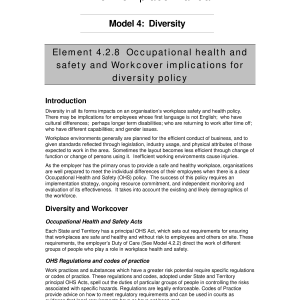 The Workplace Manual — Model 4: Diversity — Element 4.2.8: Occupational Health and Safety implications for diversity policy