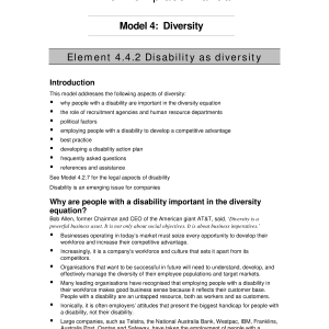 The Workplace Manual — Model 4: Diversity — Element 4.4.2: Disability as diversity