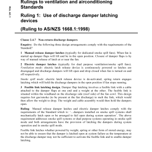 Rulings to ventilation and airconditioning Standards, Ruling 1: Use of discharge damper latching devices (Ruling to AS/NZS 1668.1:1998)