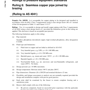 Rulings to pressure equipment Standards, Ruling 8: Seamless copper pipe joined by brazing (Ruling to AS 4041)