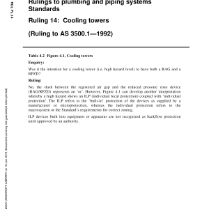 Rulings to plumbing and piping systems Standards, Ruling 14: Cooling towers (Ruling to AS 3500.1-1992)