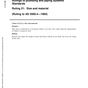 Rulings to plumbing and piping systems Standards, Ruling 21: Size and material (Ruling to AS 3500.4-1994)