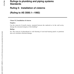 Rulings to plumbing and piping systems Standards, Ruling 5: Installation of cisterns (Ruling to AS 3500.1-1992)