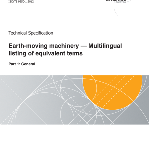Identically adopts ISO/TS 9250-1:2012, which presents a list of equivalent general terms in English, French, Russian and Chinese related to earth-moving machinery, these terms being thoroughly defined in other existing International Standards. Table of contents Cited references in this standard Content history ISO/TS 9250-1:2012 [Current] DR SA TS ISO 9250.1:2021 Please select a variation to view its description. Published 11/06/2021 Pages 11 Please select a variation to view its pdf.